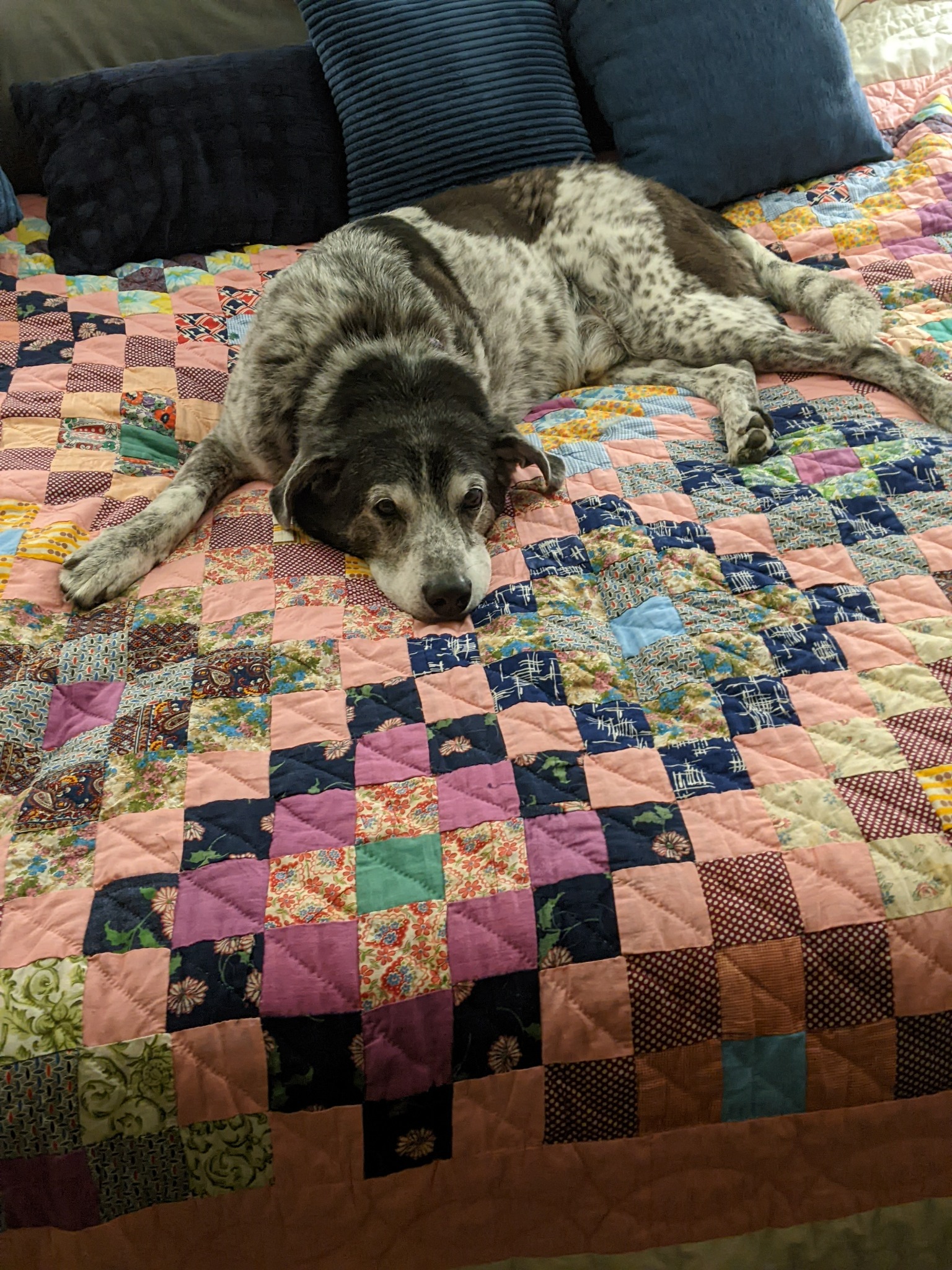 We’re seven months out and I’m so glad we went along with the doc’s advice, but I will admit, I wasn’t sure at first. Losing a front leg is tougher on a dog than a back leg, simply because it’s harder to move around. The front legs do a lot of the heavy lifting. At his age, I didn’t know how he’d adjust—or if he would. I worried his quality of life would suffer; I worried he wouldn’t be happy. I worried he’d be left out on walks, worried he wouldn’t be able to do his favorite things (and to be fair, there are things can’t do, or can’t do well. Dog beds with bumpers? Ouch, he always falls either in or out of the bed…). Chemo wasn’t always easy; there were times he threw up, there were times his white blood cell count was low. The expense has been…well, a lot, but he’s worth it.